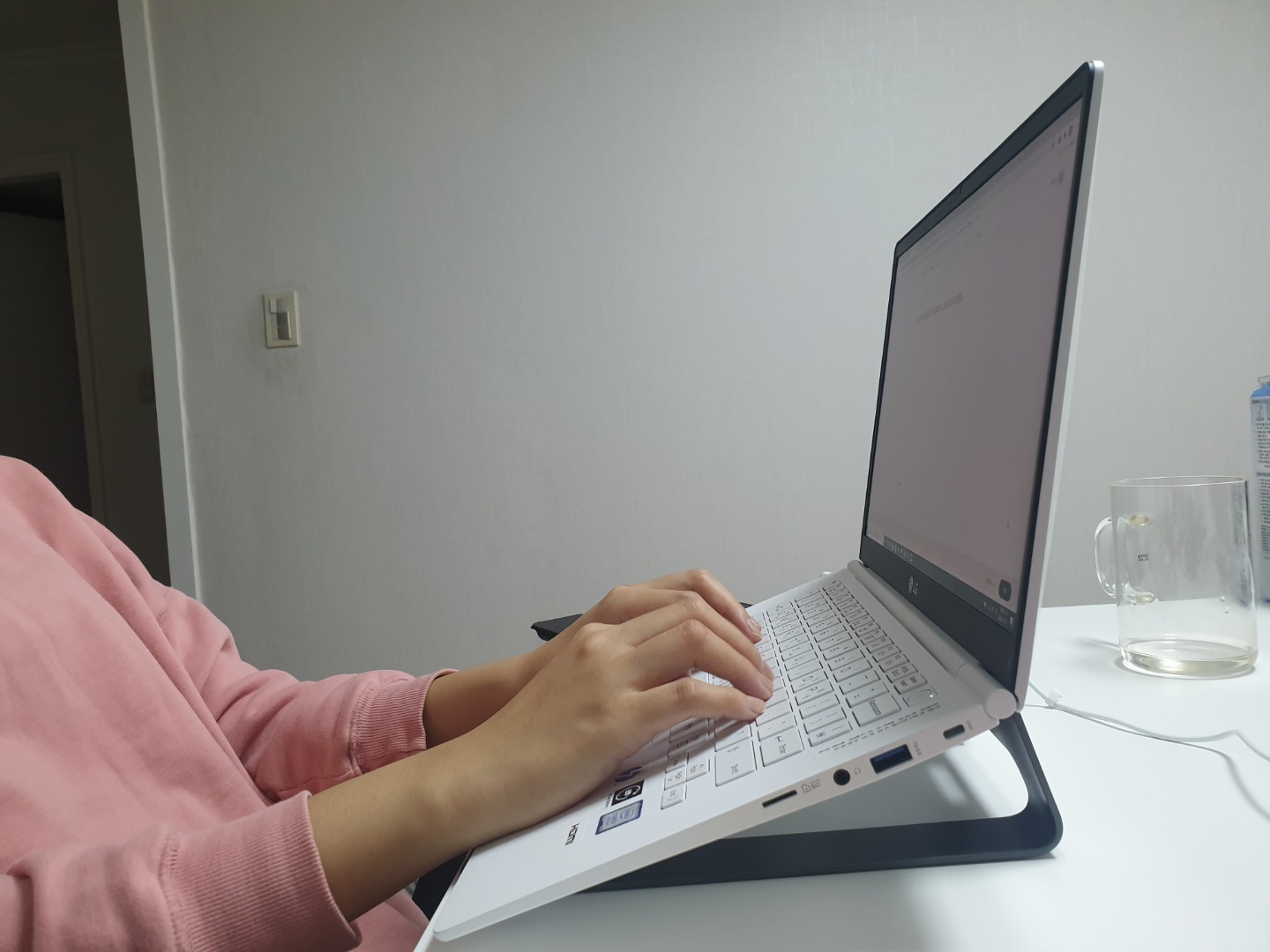 나는 고개를 숙이면 목이 아프다. 그래서 회사에서도 노트북 스탠드를 두고 높이사용한다. 집에서는 모니터를 사람별로 두기에는 책상도 협소해져서 노트북 거치대를 사용한다.