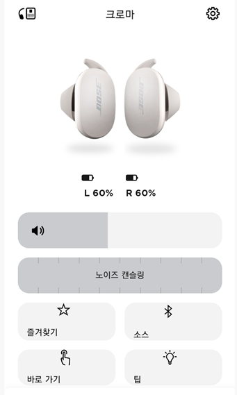 처음 꼈을때 노이즈 캔슬링을 어떻게 켜야하지? 지금 이게 된건가 싶었다. 이전에도 커널형 이어폰을 썼기 때문에 어느정도 외부 소음이 차단되었기 때문에 큰 차이를 못 느꼈기 때문이다. 나중에 앱을 깔고 보니 처음에는 50% 의 노이즈캔슬링만 설정되어 있었다.