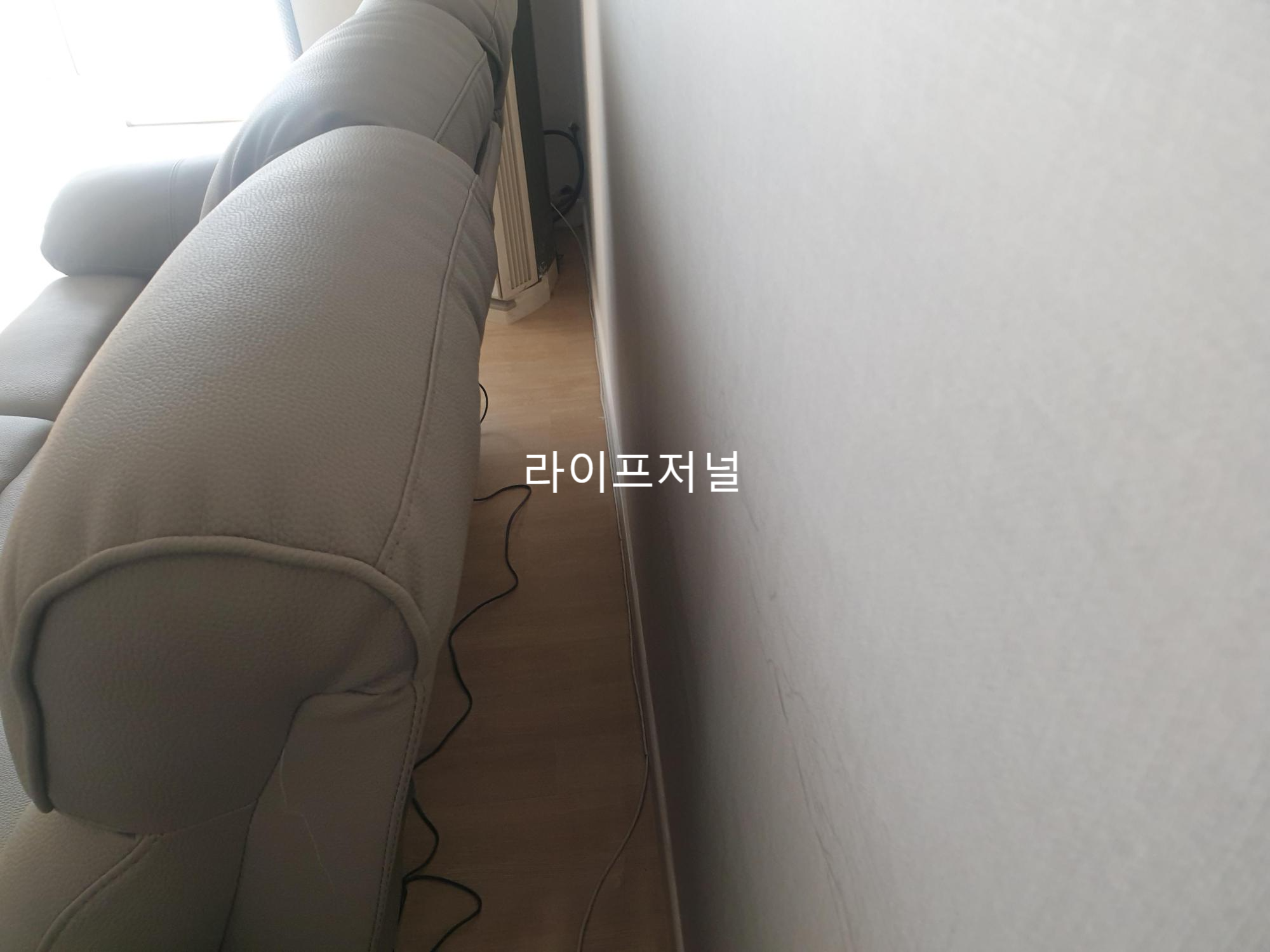 리클라이너 작동할 수 있도록 파워 어답터를 콘센트에 연결해야 한다. 콘센트 가 있는 벽면에 설치했다.