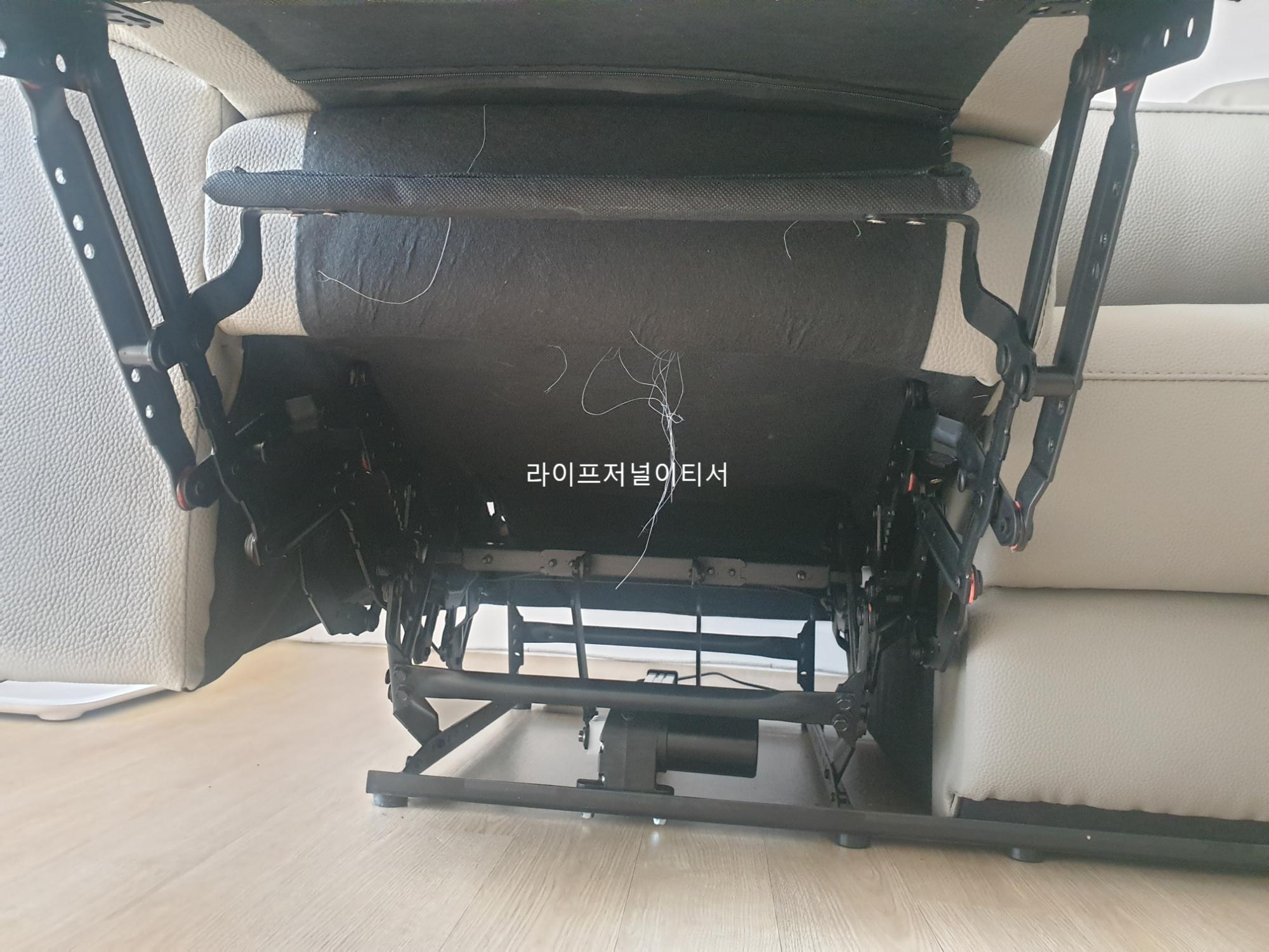 리클라이너 부분 아래는 비교적 슬림한 철 프레임으로 되어있어 무게를 가하면 슉 하고 구부러 진다. 실제로 고장이 쉽게 날 수 있는 부분!. 이 부분에 힘이나 무게를 가하면 안된다.