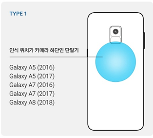 1. 카메라 하단 - Galaxy A5 (2016), Galaxy A5 (2017),Galaxy A7 (2016),Galaxy A7 (2017),Galaxy A8 (2018),